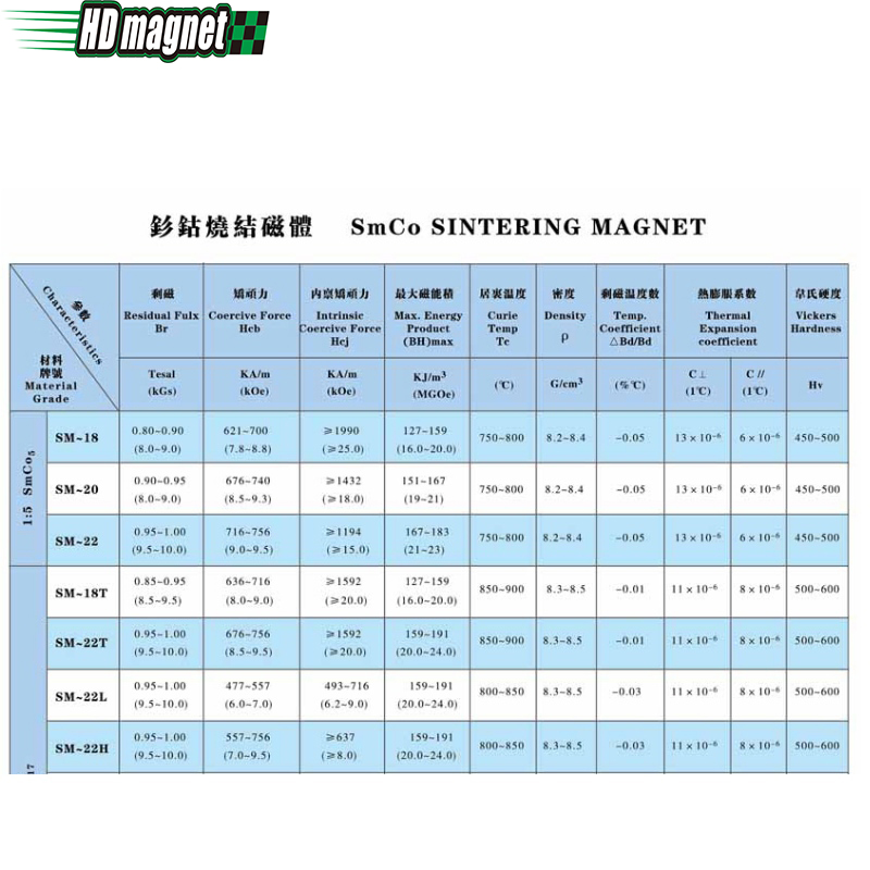 Magnety na Samarium-kobalt, také známé jako samarium-kobaltové magnety, samarium-kobaltové permanentní magnety, kamna-kobalt-permanentní magnety atd., jsou vyrobeny z samaria, kobaltu a jiných kovových vzácných zemních materiálů proporcinací, tavením na slitiny, drcením, lisováním a slinováním.Magnetický materiál s vysoce magnetickým energetickým výrobkem a extrémně nízkým teplotním koeficientem.Maximální pracovní teplota může dosáhnout 350 obrysů 8451;a negativní teplota není omezena.Je-li pracovní teplota vyšší než 180 obložení 8451;, jeho stabilita teploty a chemická stabilita převyšují neodymiové železo Boron permanentní magnet materiál.